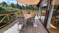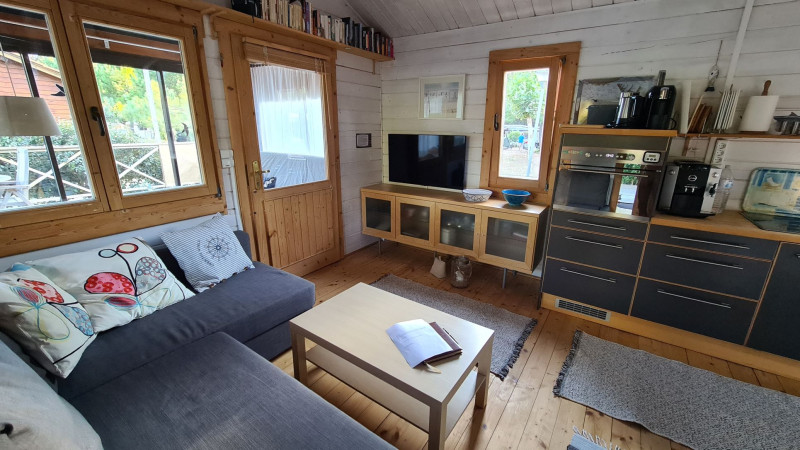 | Beschreibung: | Auf einer grün umrahmten 400 m² Grundstücksoase in ruhiger Lage nah am Bogenschießplatz: - 60 m² gepflegte Gesamtfläche, zwei Schlafzimmer (140 cm bzw. 80 cm Etagebetten), weitere Schlafmöglichkeiten auf zwei 140 cm Schlafsofas im Wohnzimmer bzw. im Wintergarten. - Badezimmer mit Dusche und geschützte Außendusche (kalt/warm). - Moderne voll ausgestattete Küche mit Spülmaschine, Mikrowelle und Backofen. - SAT-TV (u.a. Deutsche Sender) und Blueray-Spieler. - Kinderhochstühle und weitere Ausrüstung für Kleinkinder. - Großzügige 80 m² Terrasse, Gartenmöbel mit Auflagen, Sonnenliegen, Sonnenschirme, Sonnensegel, Hängematte. - Vier Fahrräder. - WiFi Hotspot direkt vor dem Haus. - Lademöglichkeit für E-Autos (10 A). - Keine Haustiere. Preis auf Anfrage